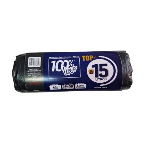 SACO PARA LIXO ROLO 15L - C/60 UNIDADES PRETO TOP